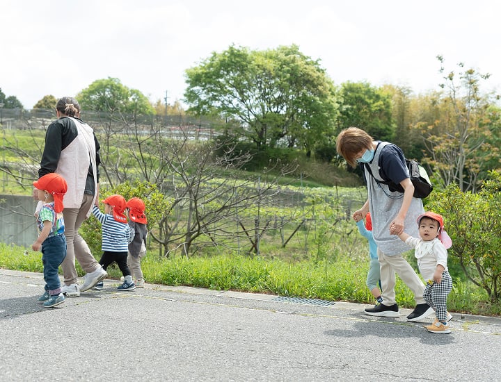 園の周囲には季節を感じられる散歩道があり、自然観察や外遊びを通して感性を育みます。
