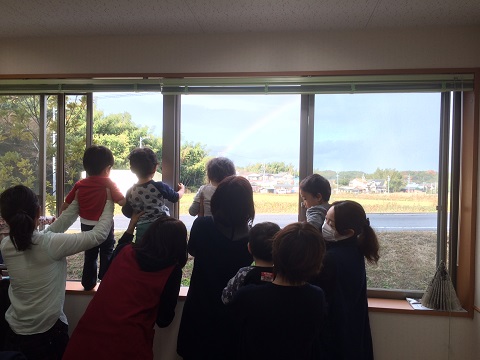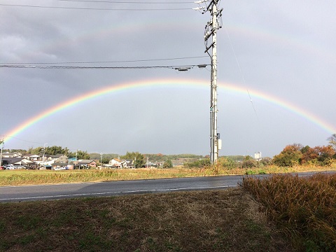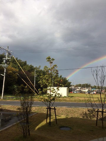 素晴らしい虹が出ましたよ! 2015.12.14 お知らせ 突然の大雨の後 (゚Д゚;)!! きれいな虹が出ました☆ そうなんです!レインボーなんです!くぅ~! よくみると 二重になってます! 慌てて子供たちを呼んで みんなで見ました。 でも テンション上がっていたのは 子供たちより大人たちだったかもしれません!ムムムっ! メドック東浦 事務部 吉田