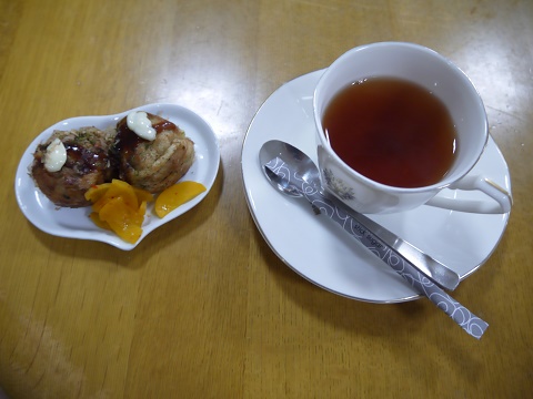 いつもと違う雰囲気でお茶をする演出をしています。