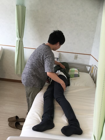 ※写真が寝返りのサポートの写真しかないのですが、この後、起き上がり、移乗も体験して頂きました
