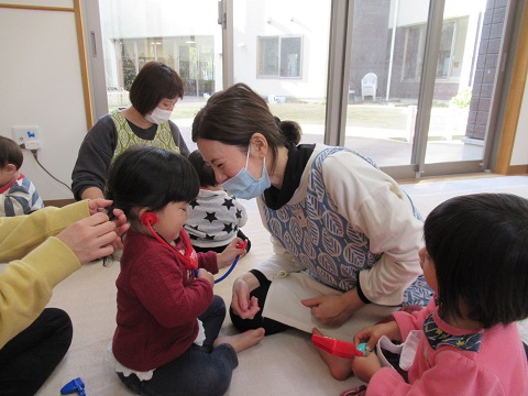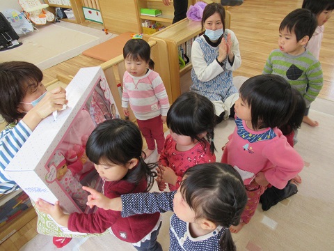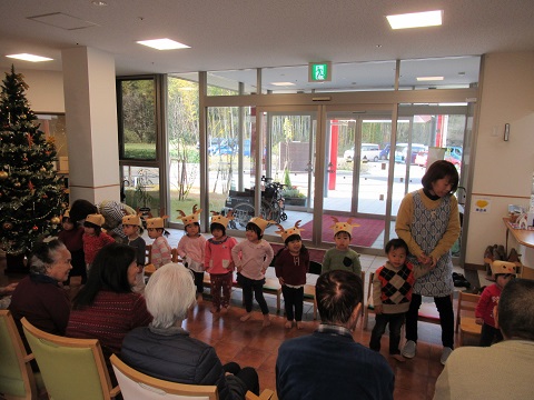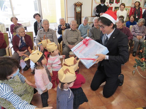 (保育)メリークリスマス 2018.12.27 保育園 12月25日に利用者様と一緒にクリスマス会をしました。 めどっこ保育園の子どもたちは、トナカイの帽子を被って クリスマスのうたに合わせて踊りを披露!! 理事長サンタからのプレゼント☆ 1歳児がもらったところをパシャリ!! 利用者様からもプレゼントを頂きました。 お部屋に戻って早速あそび始める子どもたち☆ 2歳児は、お医者さんバック 1歳児は、お人形セット 0歳児は、かわいい絵本 最後はみんなでハイポーズ!! めどっこ保育園 成田