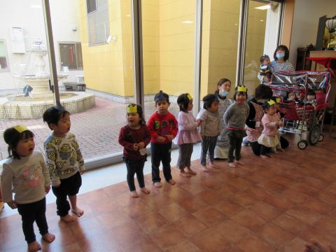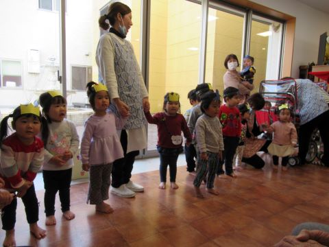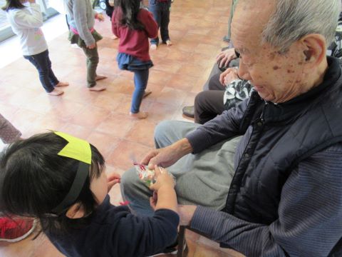 (保育)ひなまつり会 2019.03.07 保育園 3月1日に、めどっこの子どもたちは利用者様と一緒に ひなまつり会をしました。 利用者様の前で歌を披露する前に みんな一緒に ハイポーズ! さあ、本番! 元気に歌えるかな? 大きな声で歌えたね。 元気な子どもたちに、利用者様からプレゼントを頂きました。 利用者様との触れ合い。 子どもたちは大喜び! 利用者様に、お礼のあいさつもできました。 ひなまつり会、楽しかったね。 めどっこ保育園 成田