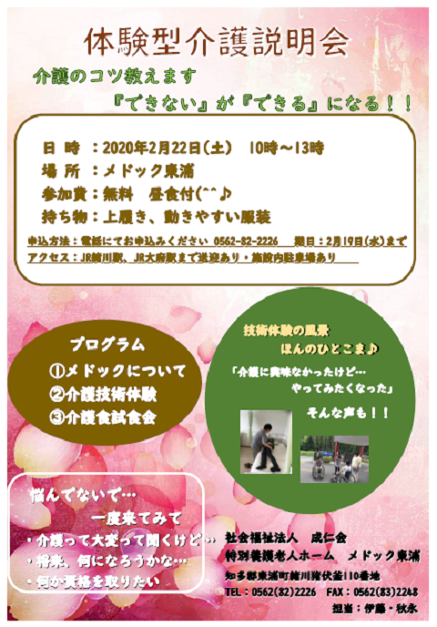 メドック東浦では、定期的に体験型介護説明会を開催しています。