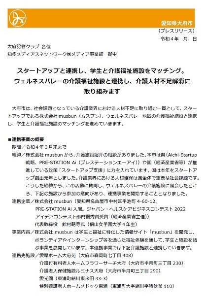この度、経産省と愛知県が推進している政策「スタートアップ支援」にてマッチングに参加いたしました。