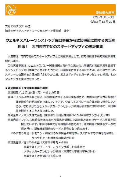 【プレスリリース】認知症機能に関する実証事業