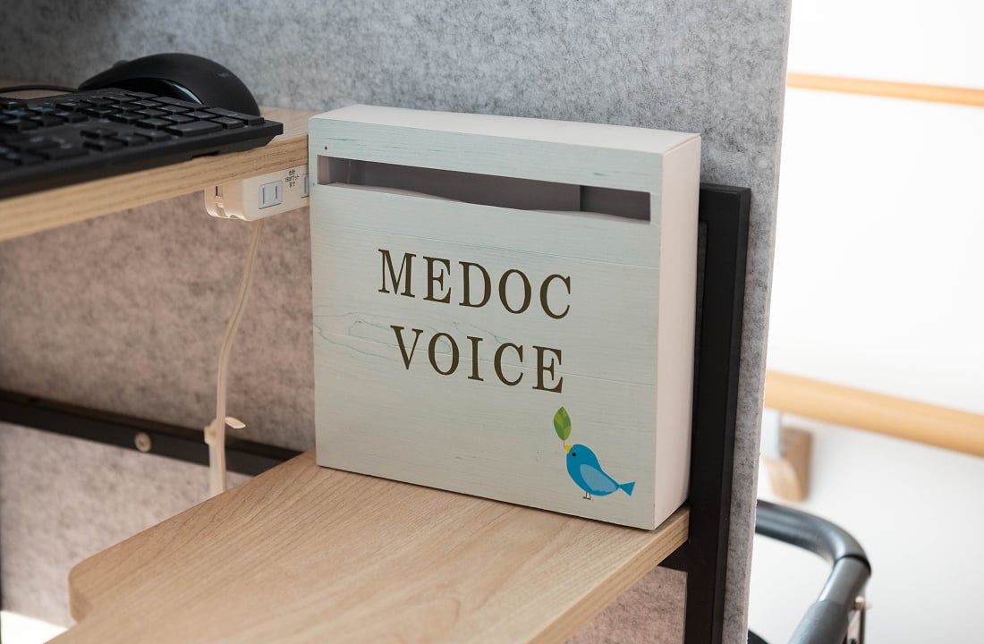 職員用目安箱。1対1で完結されるのが介護。そんな日常介護の中で、感じた素晴らしい出来事や喜びをみんなに知らせる仕組みです。